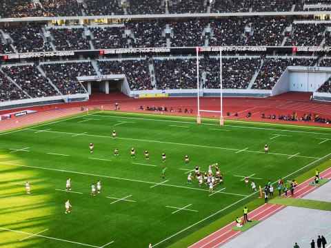 冬晴れの1月11日(土)、新しくなった国立競技場でのラグビー初めての試合として第56回大学選手権の早稲田大学対明治大学の決勝戦が行われた。早稲田が勝てば、11季ぶり16度目の優勝、明治が勝てば、2季連続14度目の優勝となるが、両校が大学選手権決勝で顔を合わせるのは、実に1996年以来23季ぶりということで、私たちOBにとっては見逃せない一戦である。私は、期待(今度こそ勝つ!)と不安(また負けるかも…)に胸を膨らませながら、稲門会仲間の京極英二さん、上田實さんと3人で、友人の伝手でやっと手に入れた前売り券を握りしめ、観客で溢れる国立競技場へと向かった。